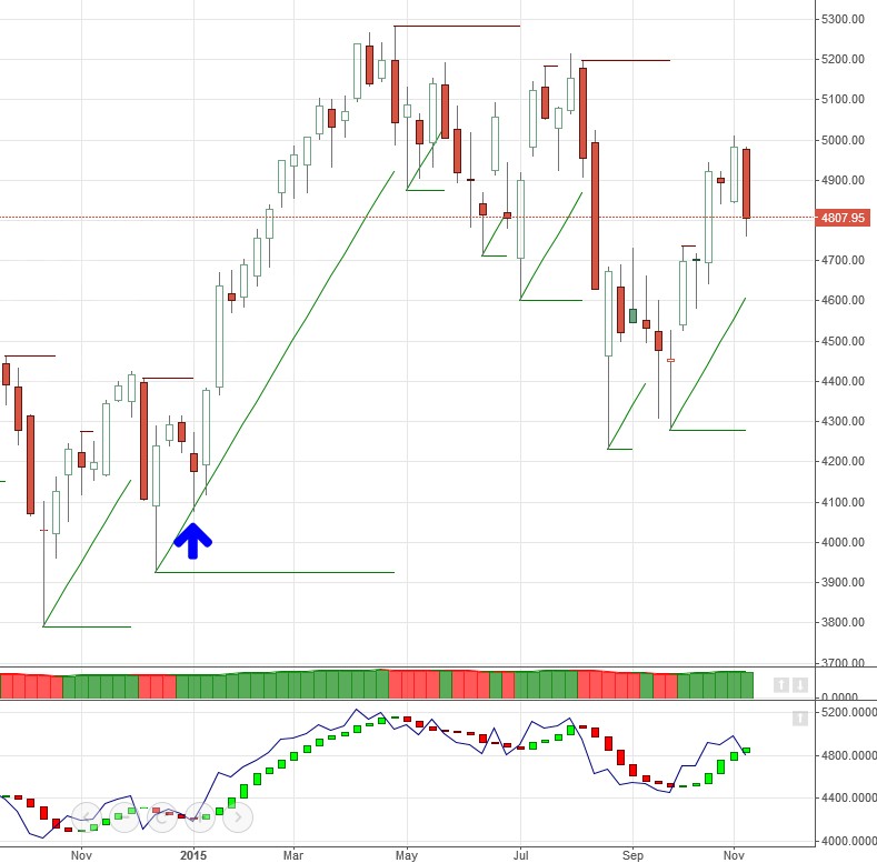Following the Jan 7, 2015 shooting at Charlie Hebdo in Paris, the CAC40 sold of initially, and then gained 28% in following 4 months. CAC40 and European futures are rebounding already. Expecting a retest of the April '15 highs: